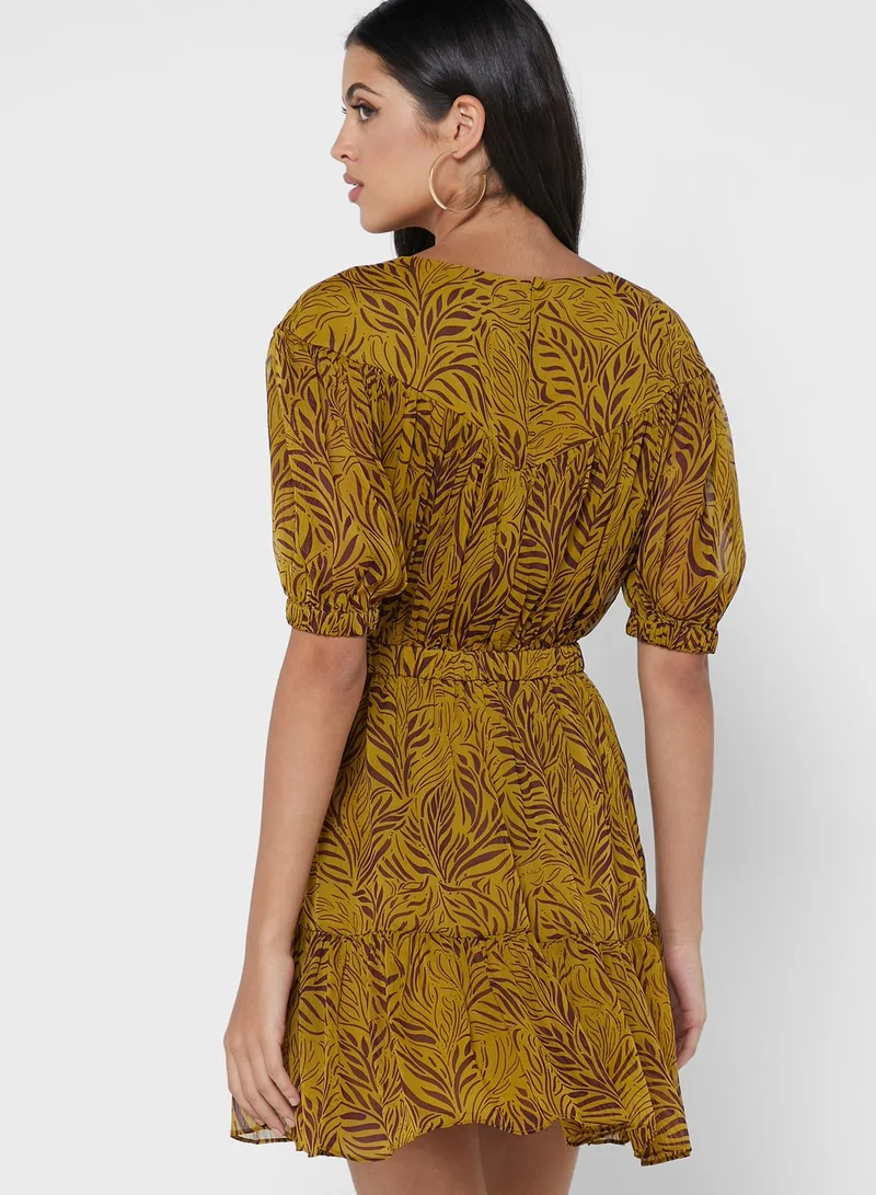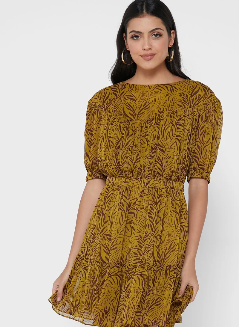 Puff Sleeve Printed Dress