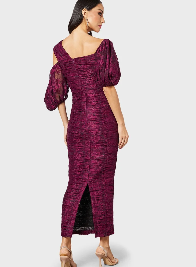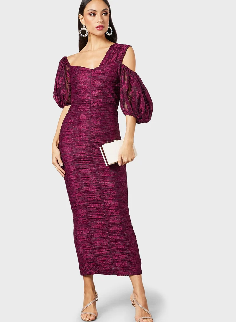 Threadz by Ajooni Cold Shoulder Ruched Balloon Sleeve Dress