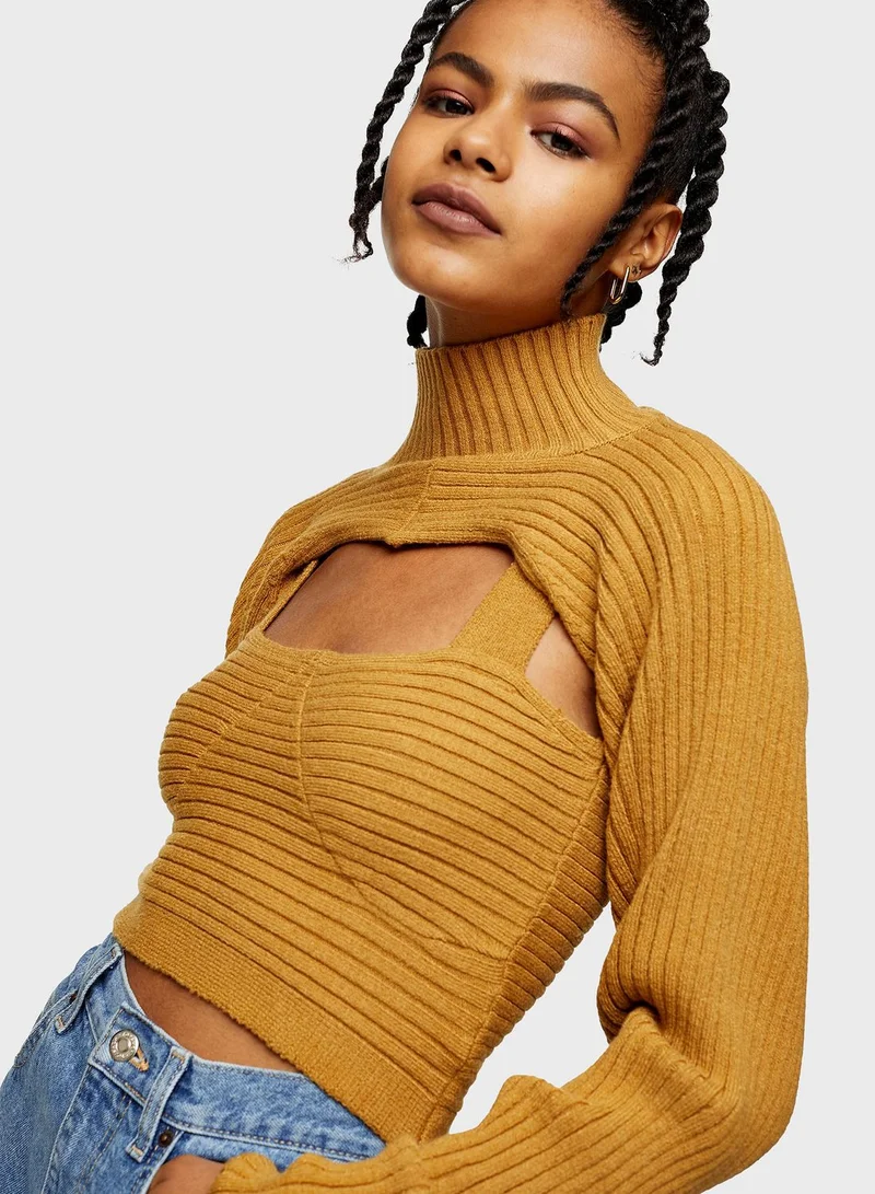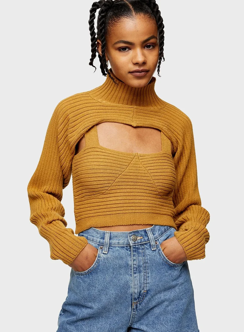 TOPSHOP Rib Funnel Cropped Sweater