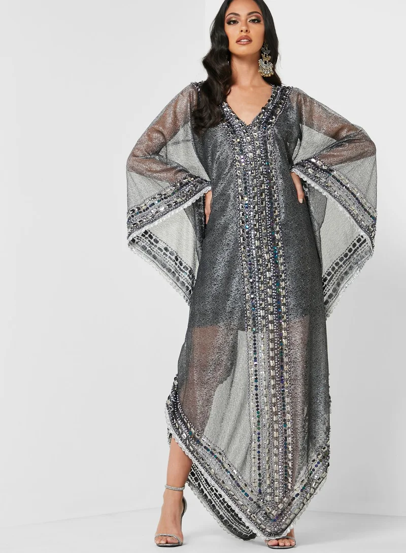 a star is born Embroidered Asymmetric Sleeve Kaftan