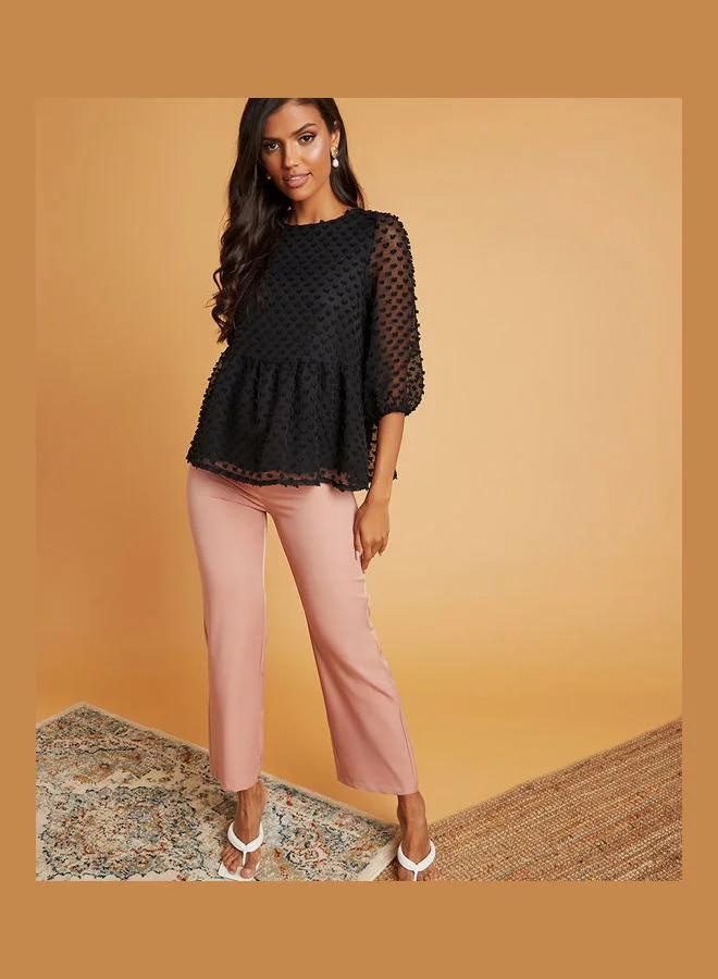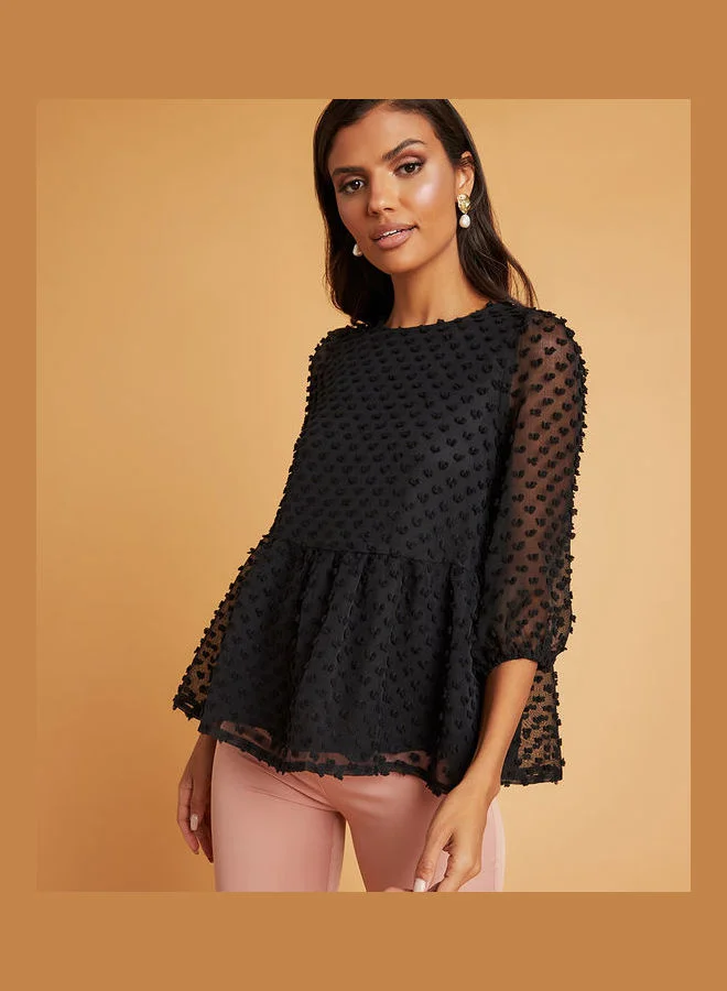 Closet By Styli Dobby Spot  Sleeves Peplum Blouse Black