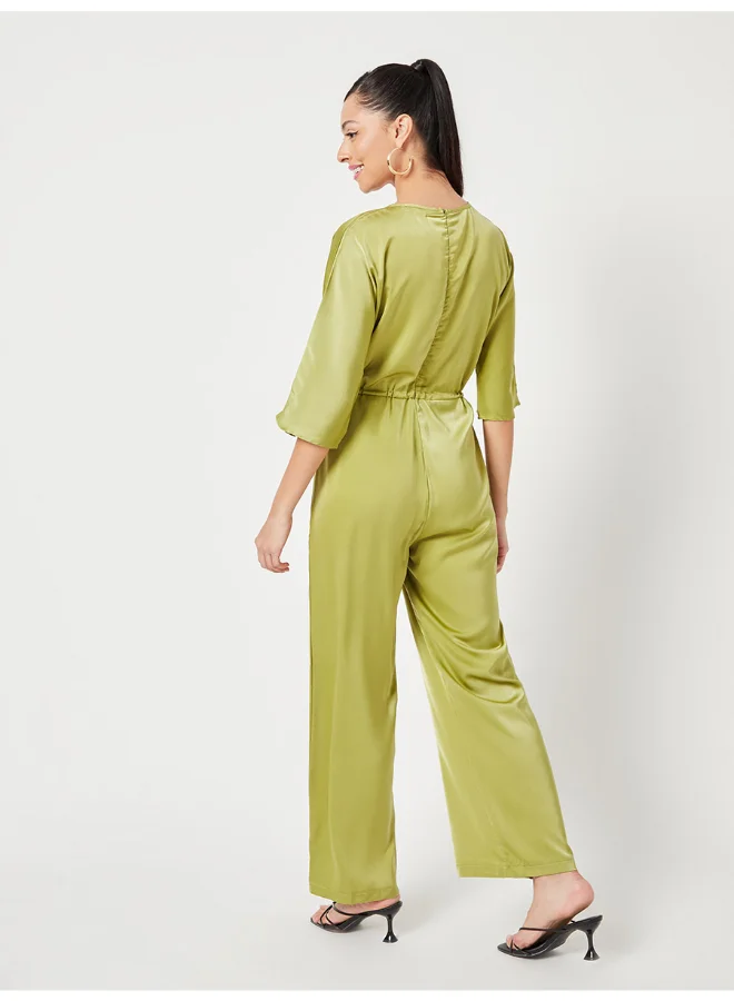 Closet By Styli Drawstring Waist Detail Wide Leg Jumpsuit Green