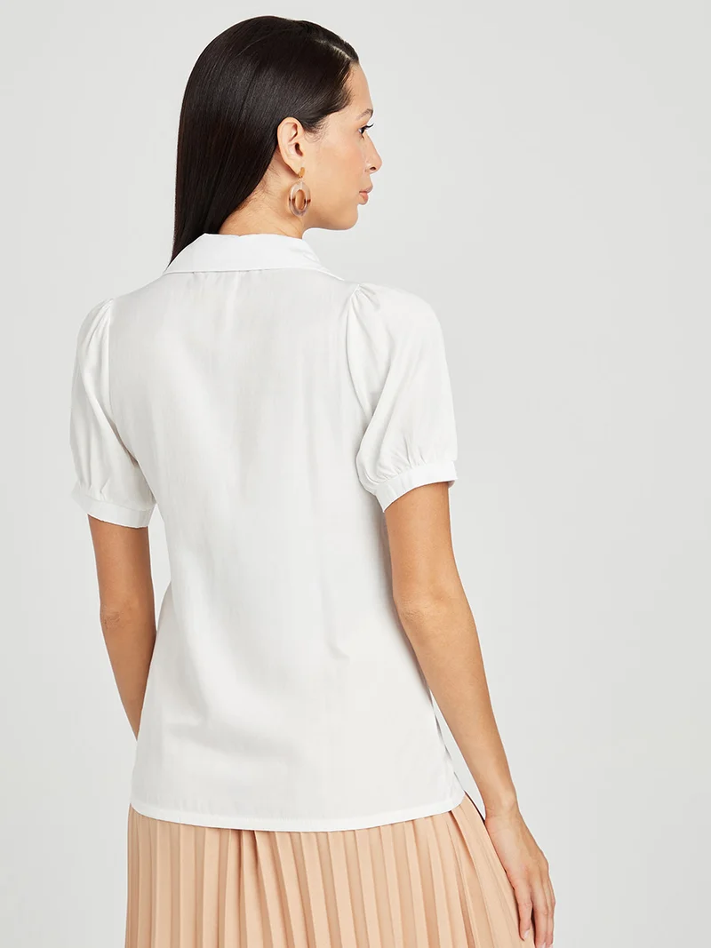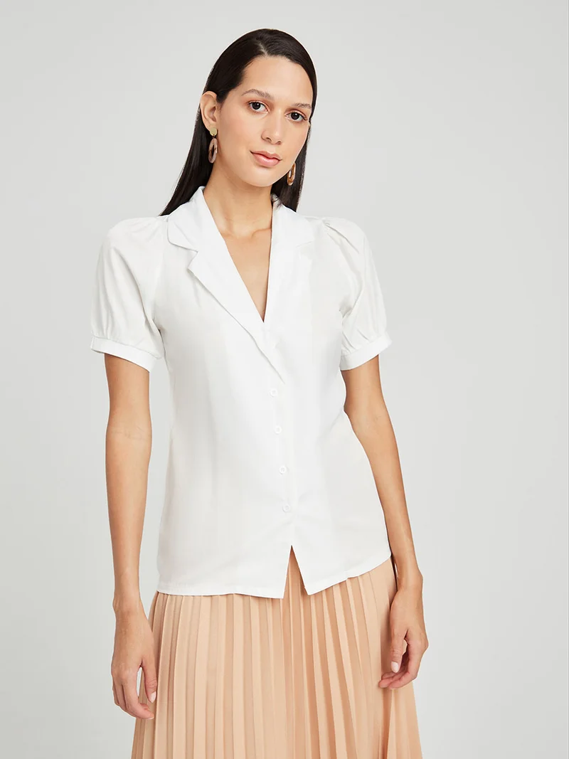 Closet By Styli Notch Lapel Collar Button Through Blouse White