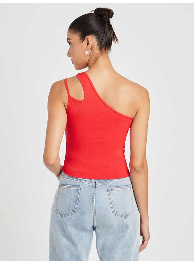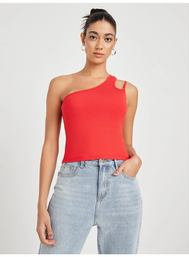 Closet By Styli One Shoulder Double Strap Ribbed Top Red