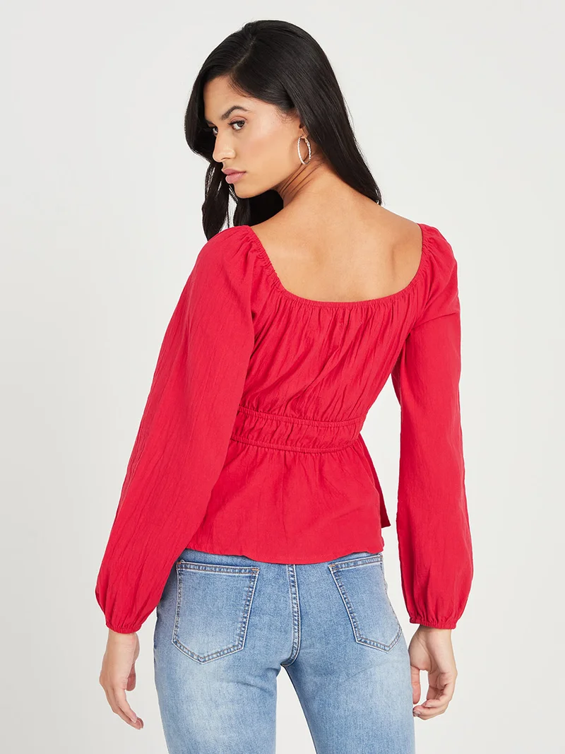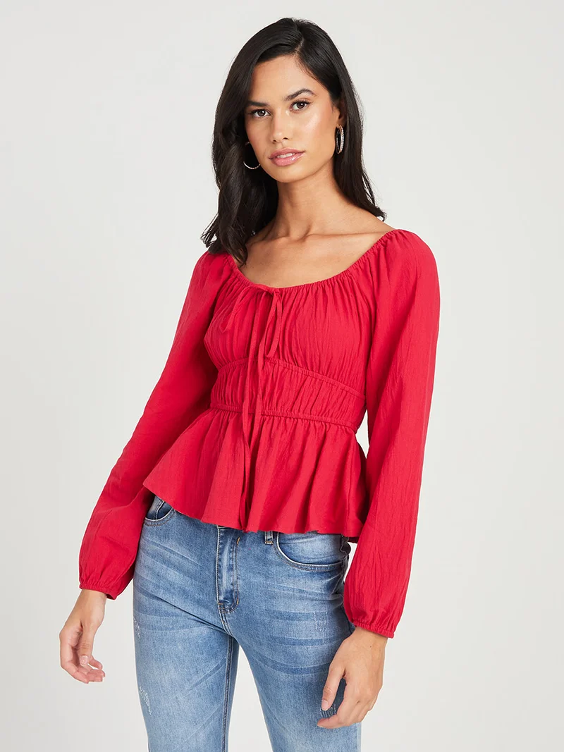 Closet By Styli Peasant Style Tie Detail Woven Blouse Red