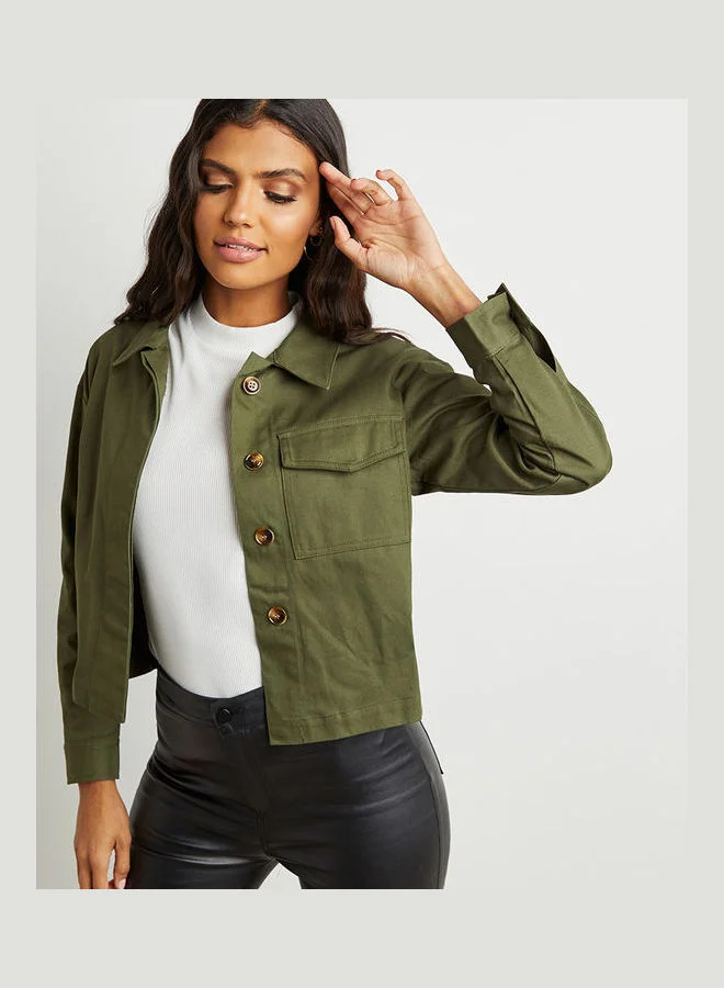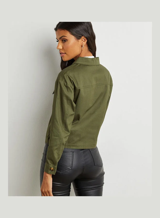 Closet By Styli Pocket Detail Trucker Jacket Khaki