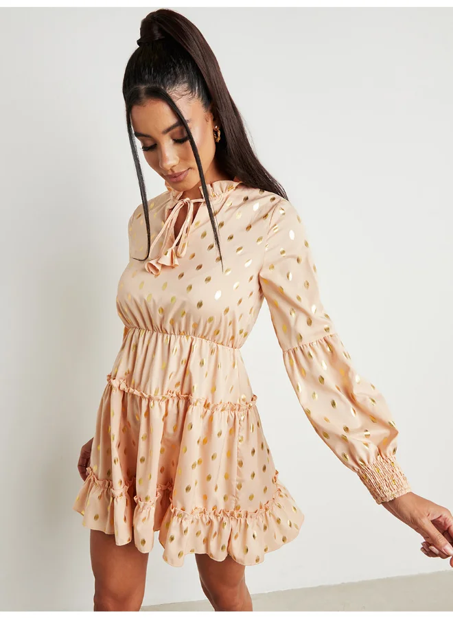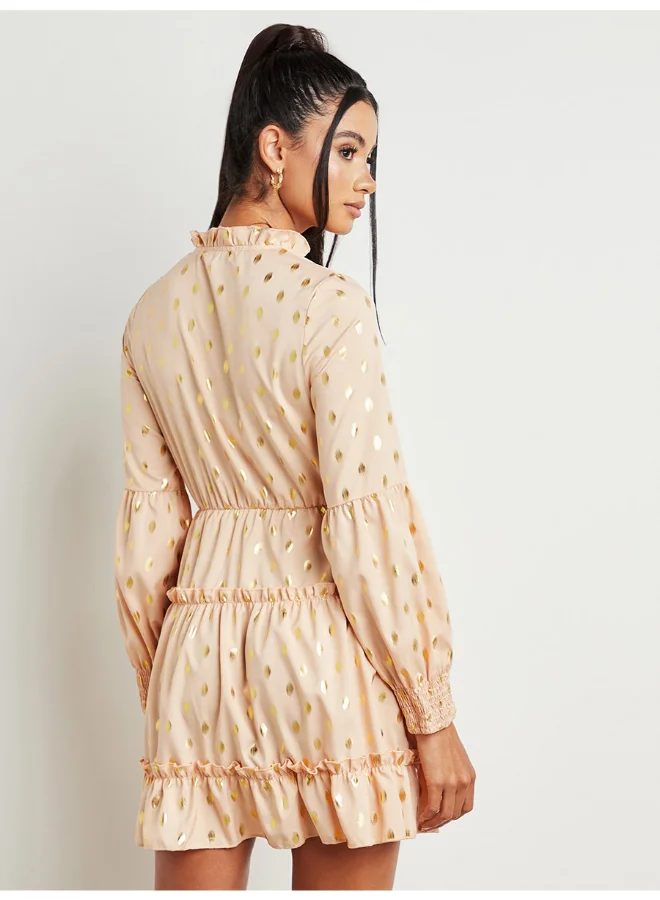 Closet By Styli Polka Dot Mini Dress Beige/Gold