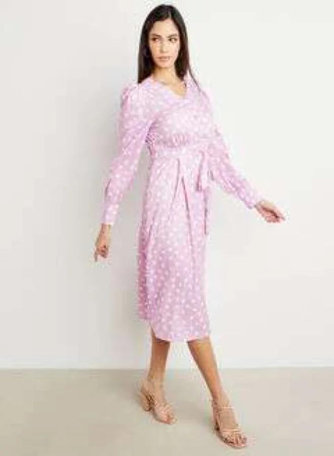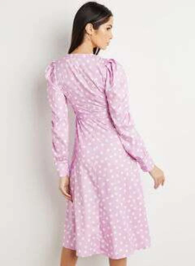 Closet By Styli Polka Dot Print Midi Dress Lilac
