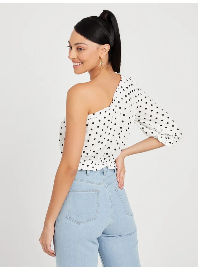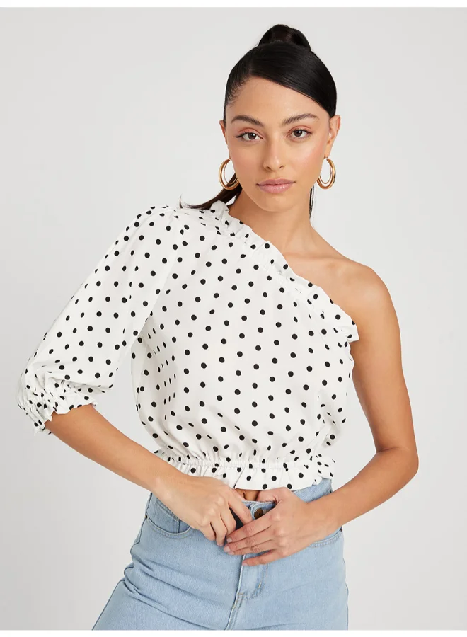 Closet By Styli Polka Dot Print One Shoulder Crop Top White/Black