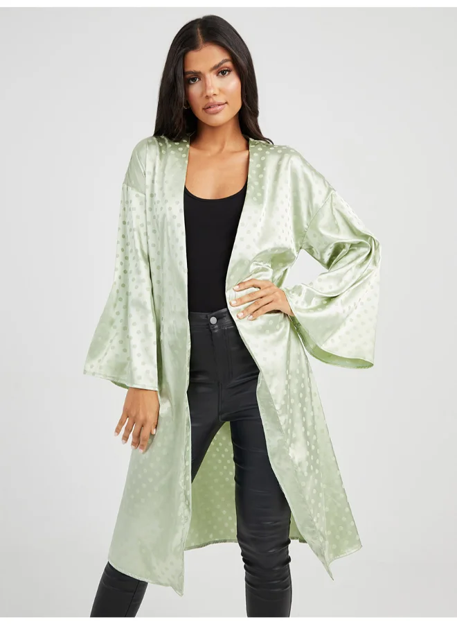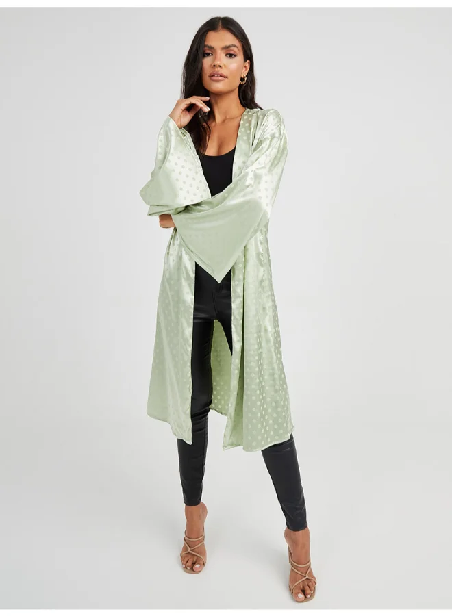 Closet By Styli Polka Dot Printed Kimono Light Green
