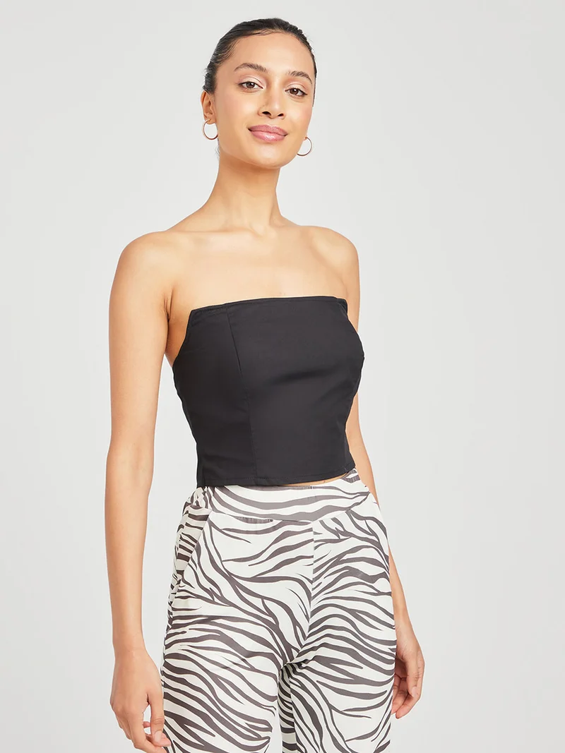 Closet By Styli Solid Pattern Bandeau Corset Crop Top Black