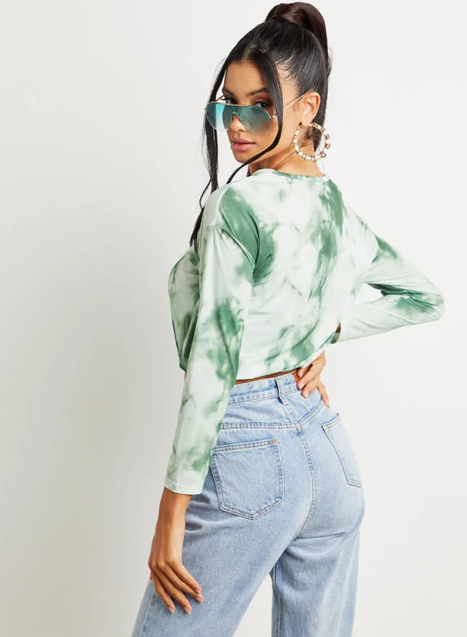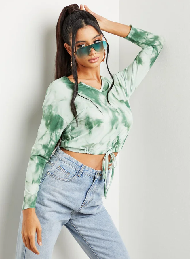 Closet By Styli Tie And Dye Drawstring Hem Crop Top Green