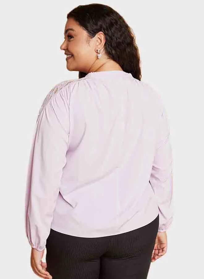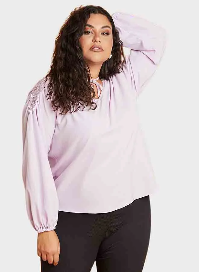 Closet By Styli Tie-Up Neck Long Sleeves Smock Top Purple