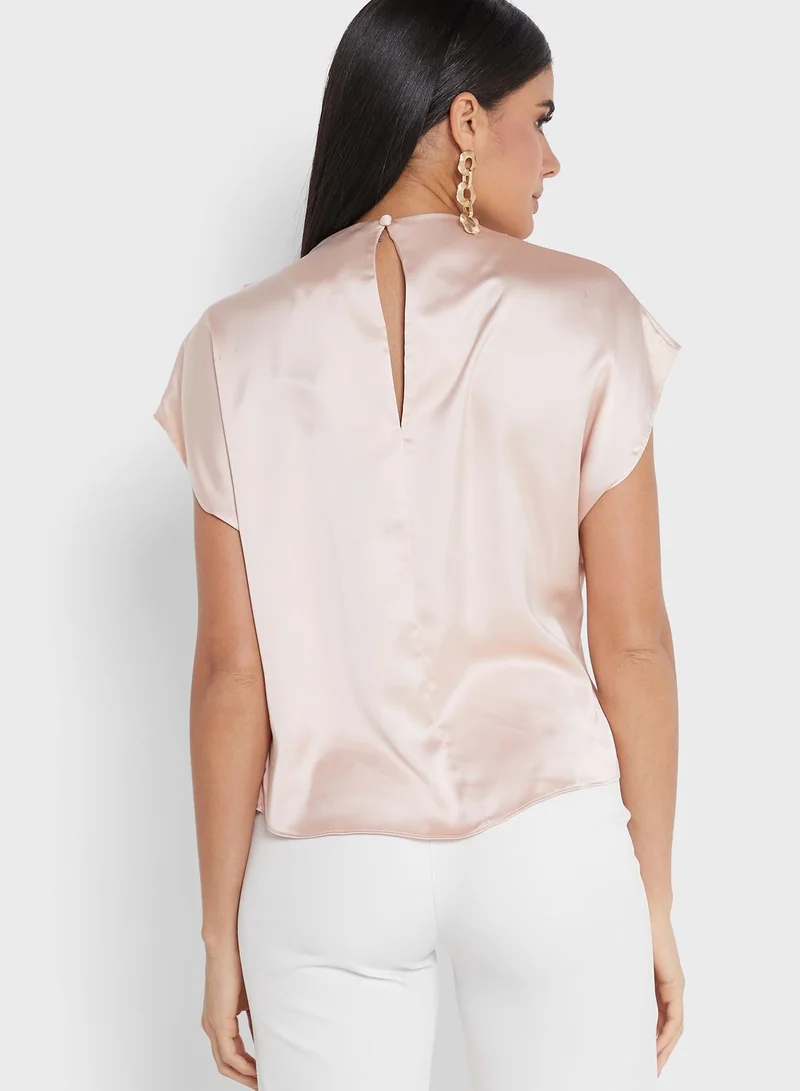 • High neck and short cap sleeves