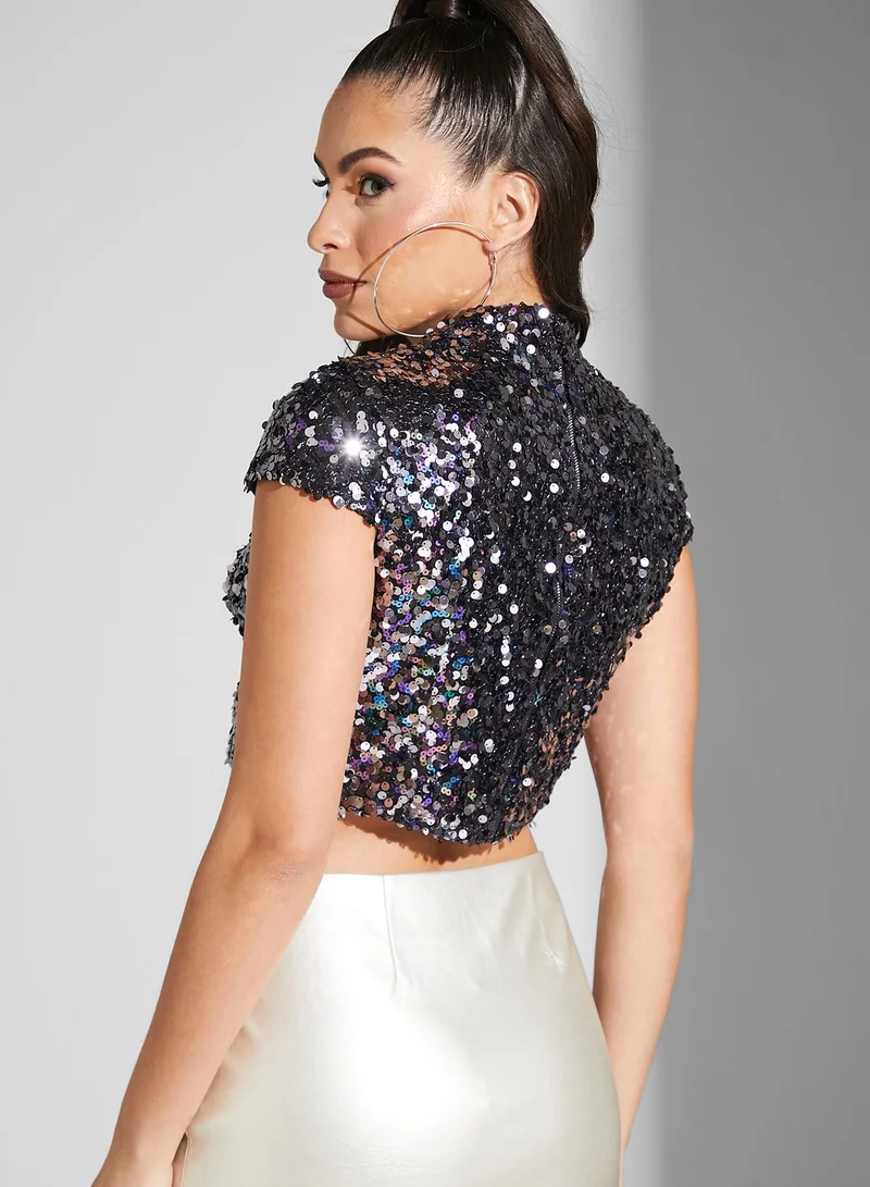 Ella Limited Edition Cap Sleeved Shimmer Crop Top