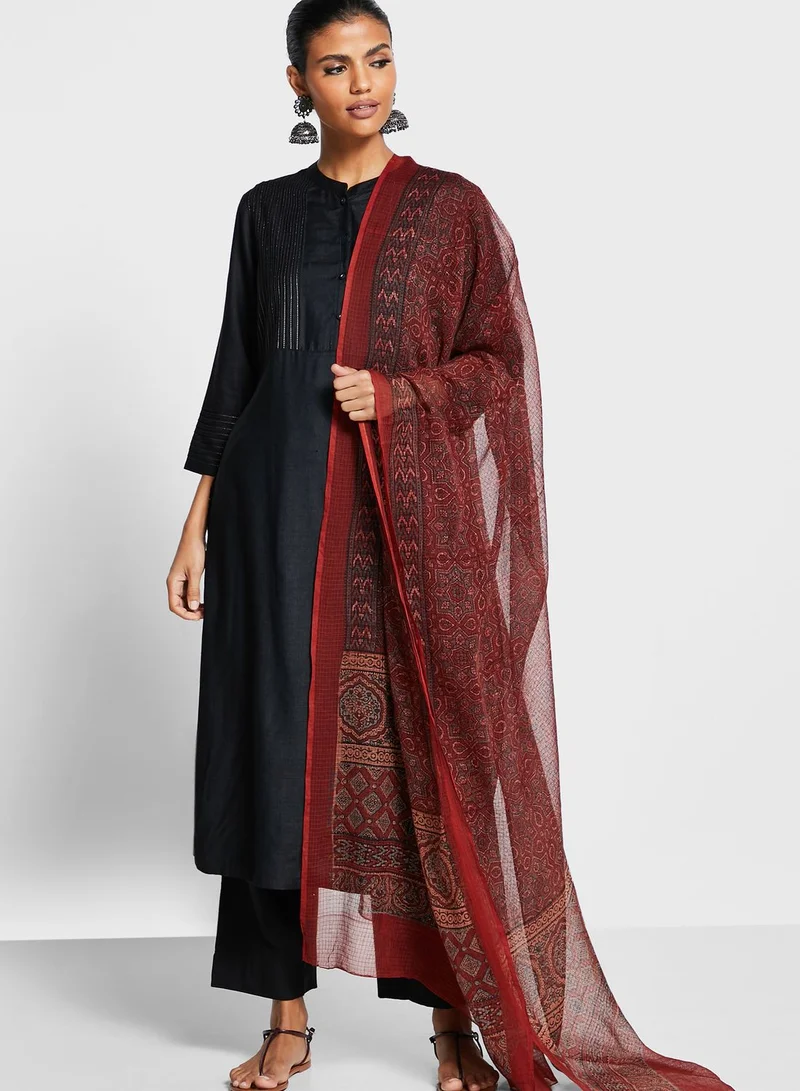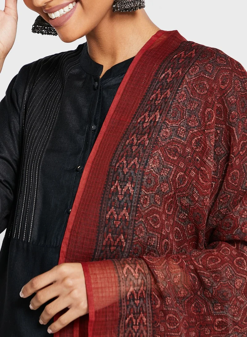 Grab this comfortable and well made Cotton Silk Kota printed Ajrakh jaal dupatta. This dupatta is versatile and can be worn for all occassions.