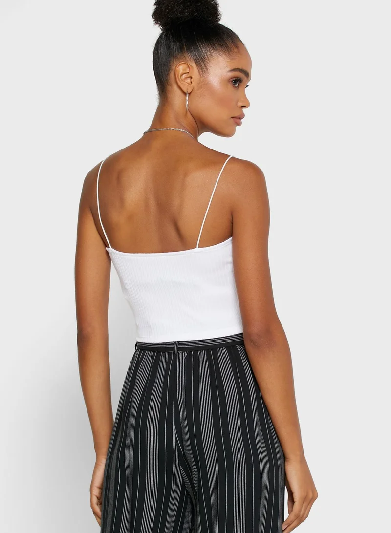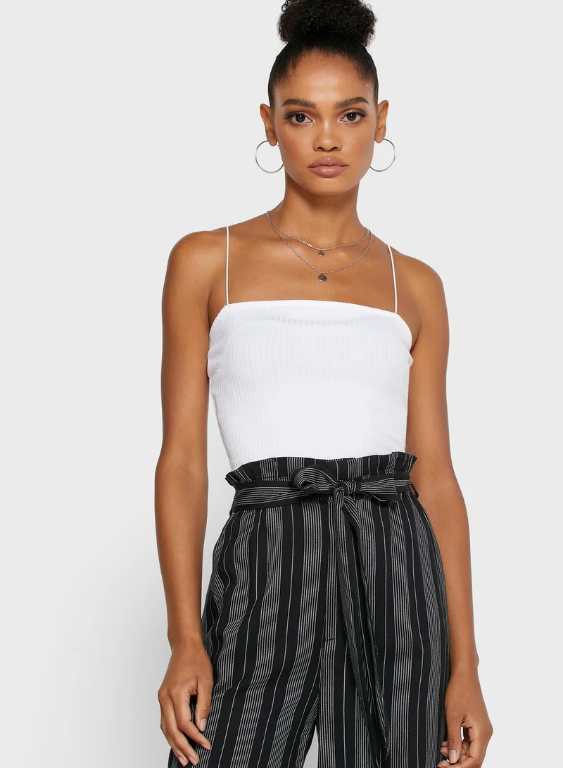 • Square neck and slim shoulder straps