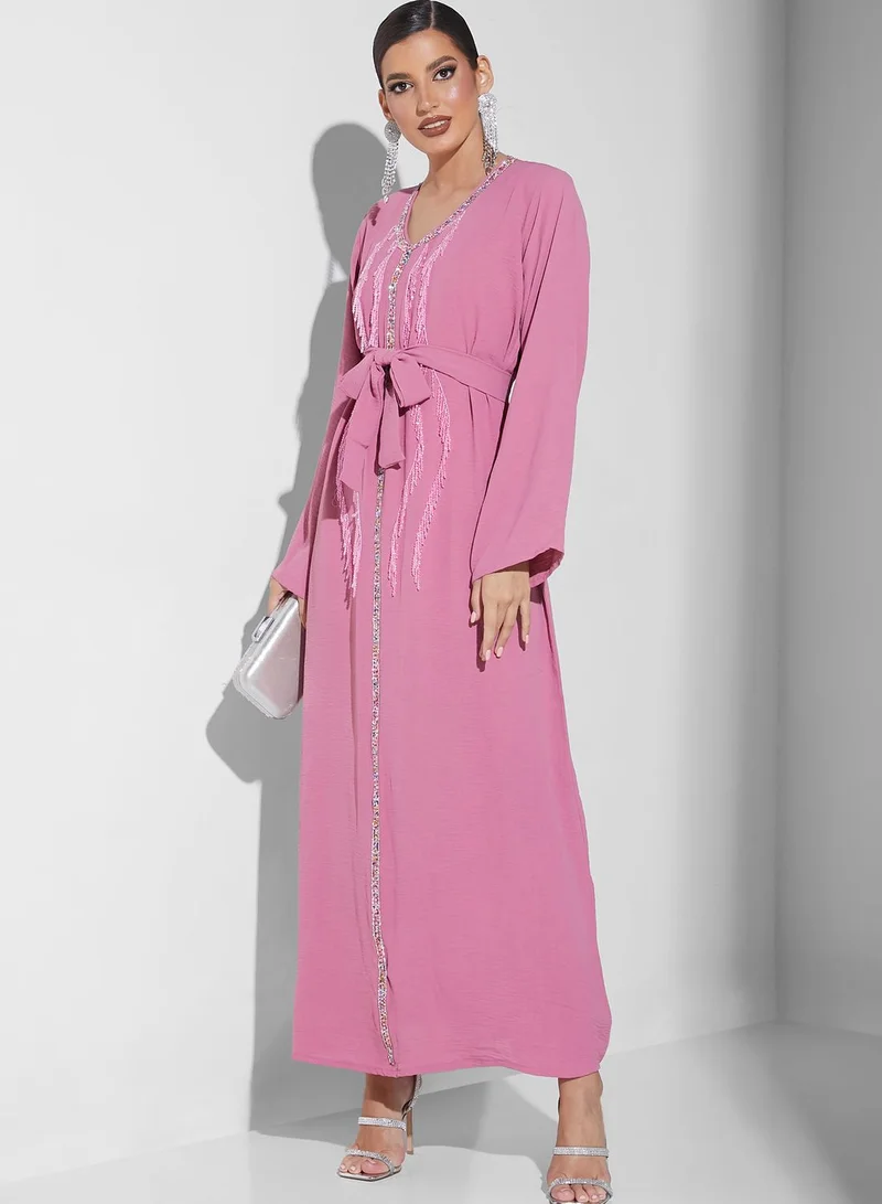 V-Neck Embellished Jalabiya
