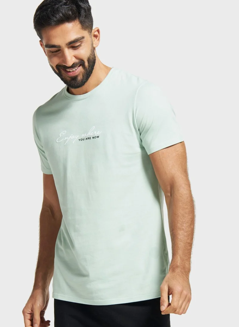 Typographic Print Crew Neck T-Shirt