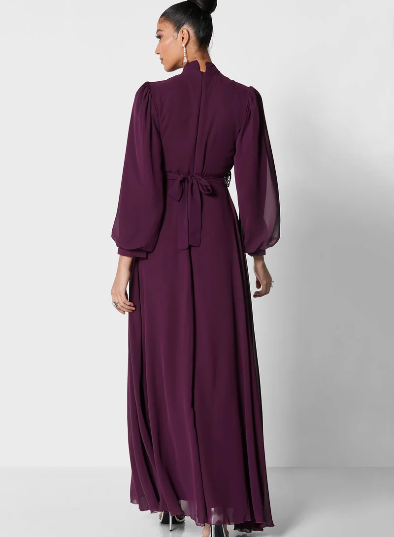 Khizana Embroidered Belt Flare Dress