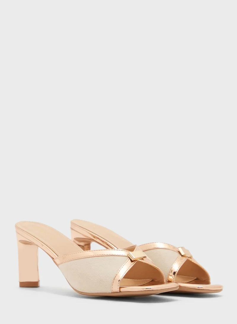 Metallic Cross Over Square Toe Mule Sandal