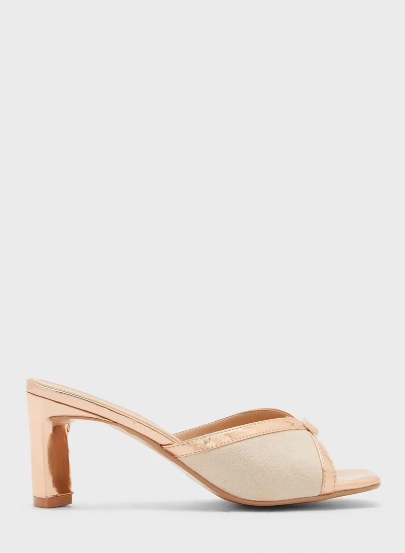 Khizana Metallic Cross Over Square Toe Mule Sandal