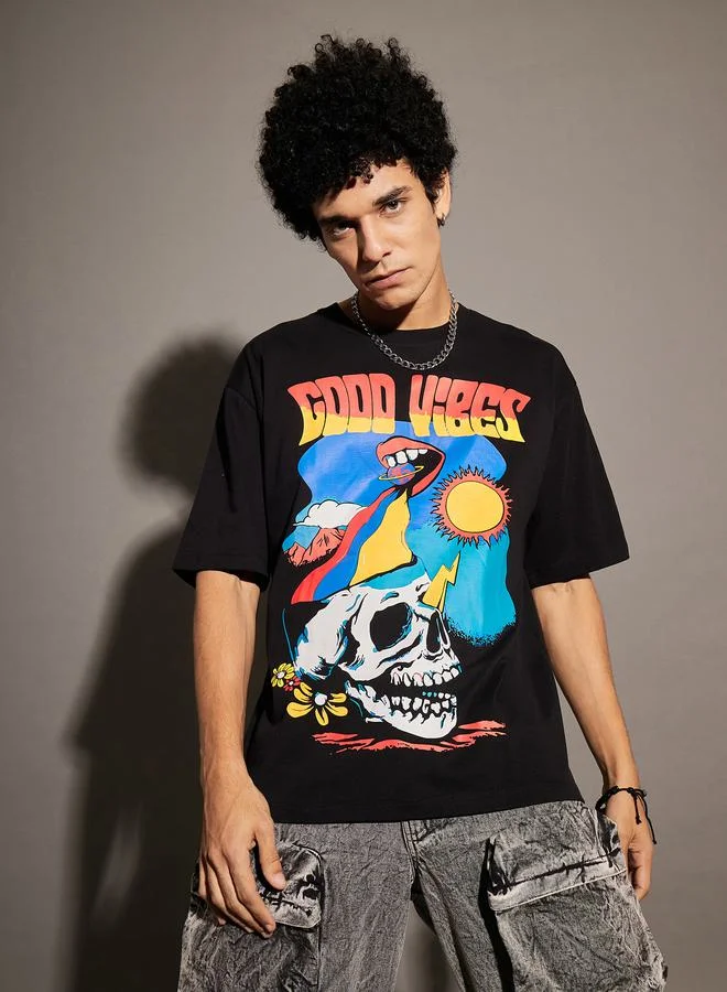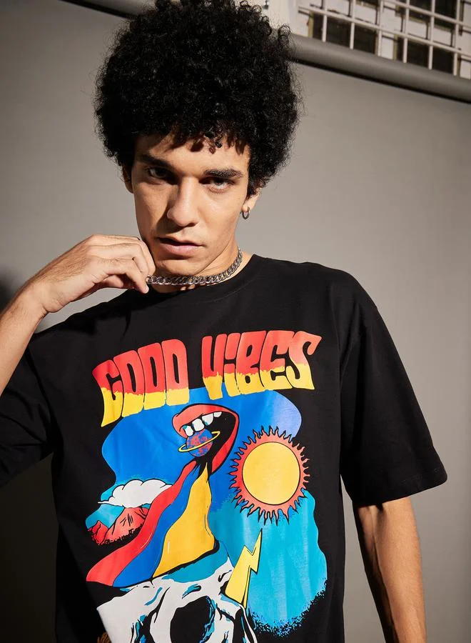 Good Vibes Graphic Print Oversized T-Shirt