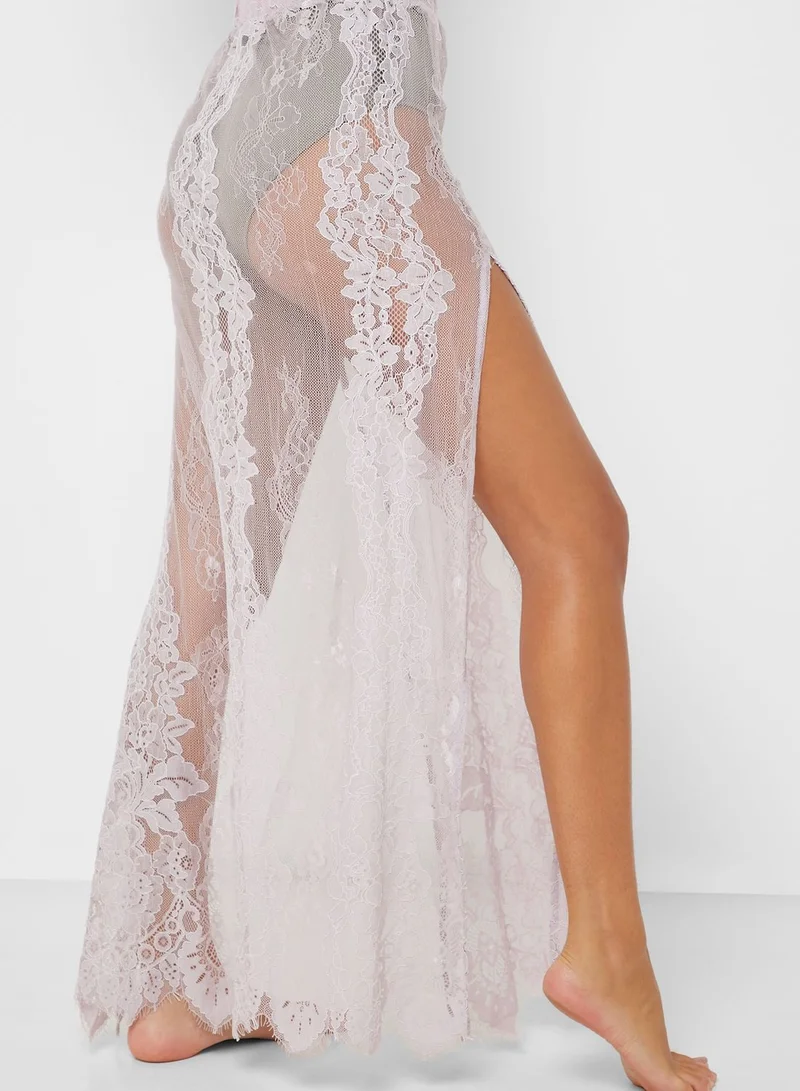 Side Split Sheer Lace Maxi Skirt