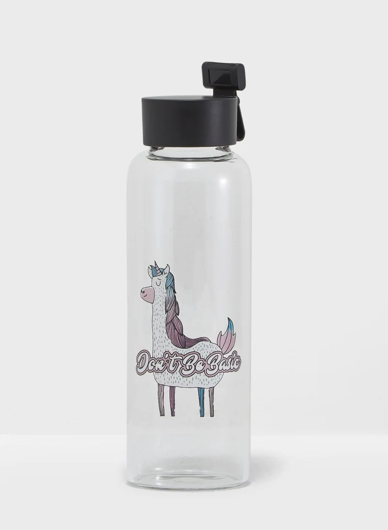 Pink Cactus Don't Be Basic Glass Water Bottle 400ml