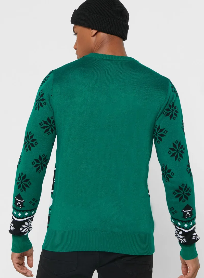 This knitted Christmas inspired sweater is a cool choice for layering or making a striking statement.