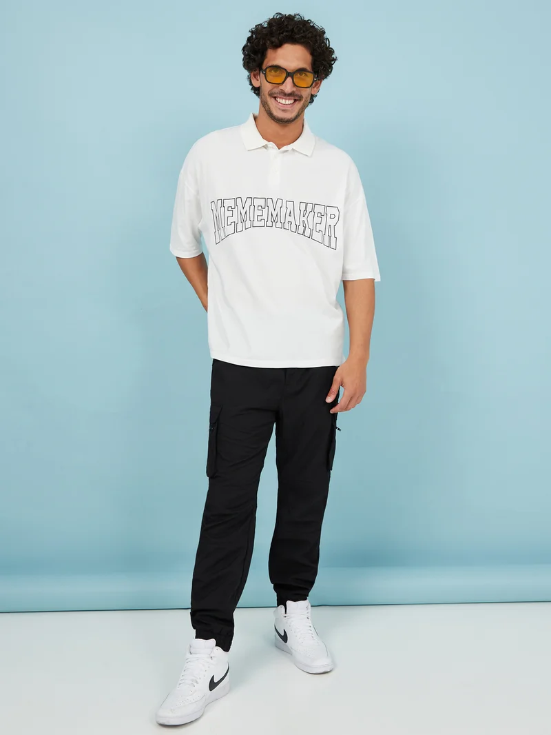 Styli Big Text Graphic Printed Oversize Polo