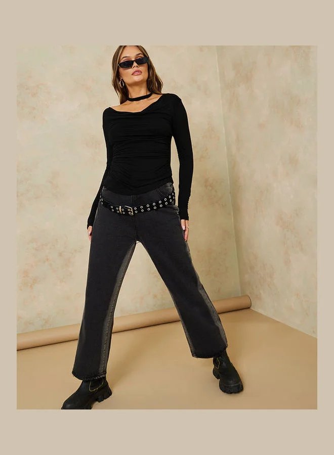 Styli Cowl Neck Fitted Knit Top with Choker Detail