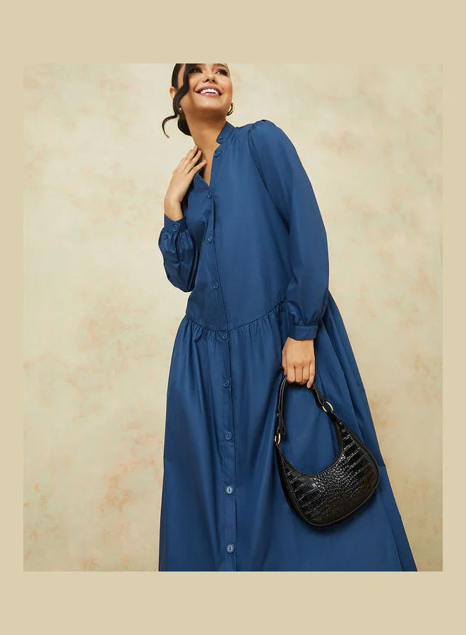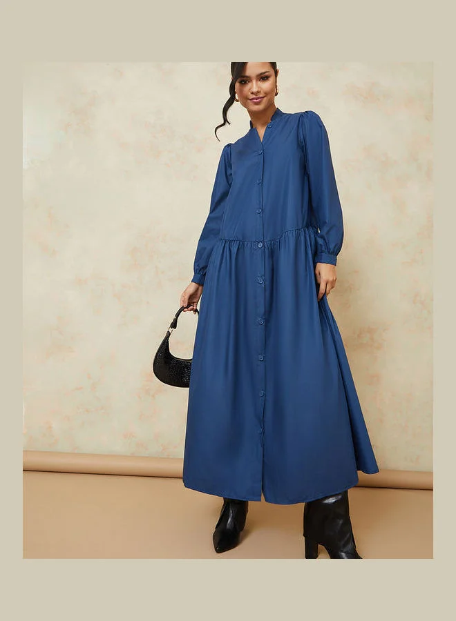 Styli Mandarin Collar Button Through Shirt Maxi Dress