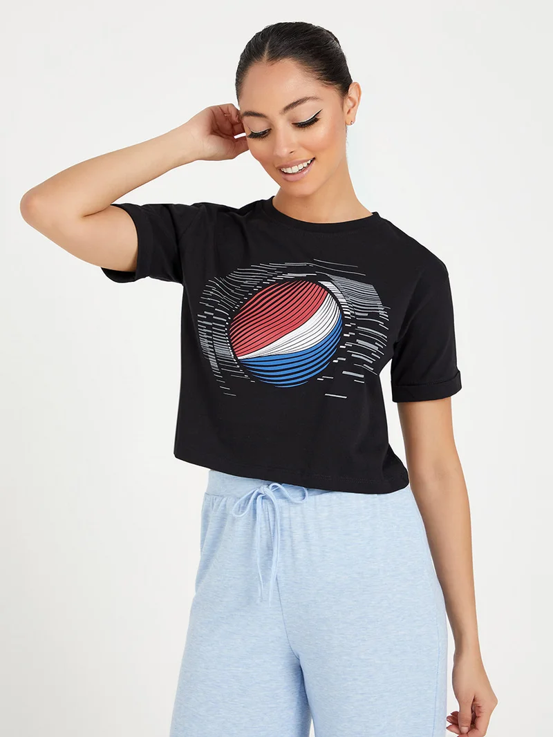 Styli Pepsi Logo Print Boxy Crop T-shirt