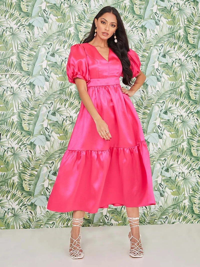 Styli Puff Sleeves Extreme Flared Maxi Dress