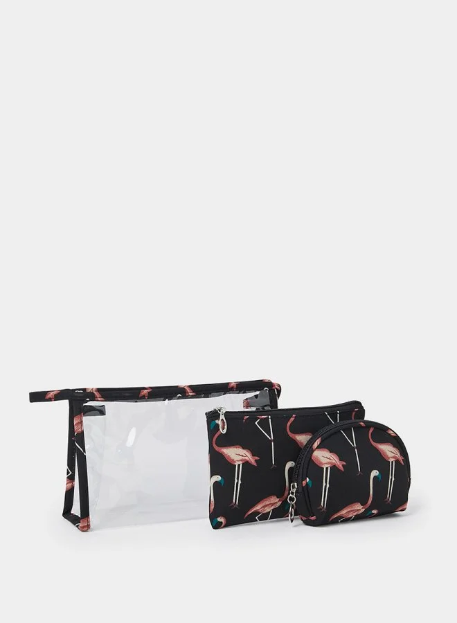Set of 3 - Flamingo Print Washbag