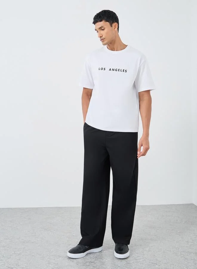 Styli Slogan Print Crew Neck Oversized T-Shirt
