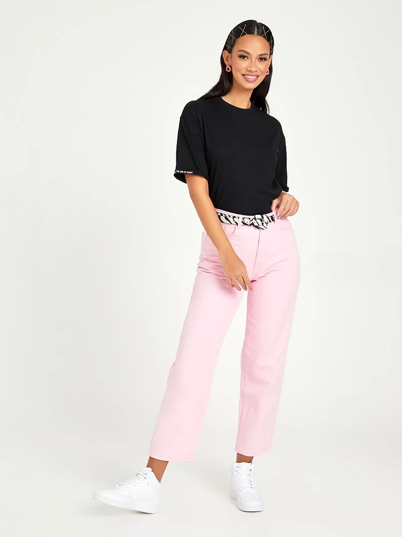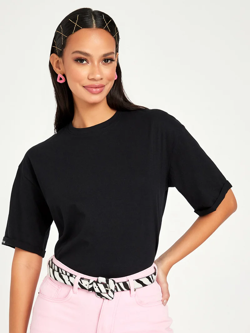 Styli Slogan Printed Cuff Short Sleeves Boxy Fit T-shirt