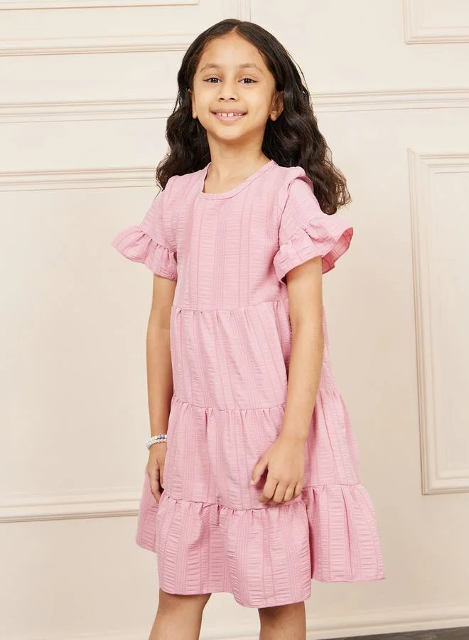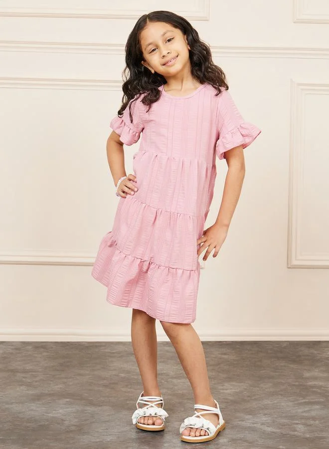 Styli Textured Stripe Detail Tiered Dress
