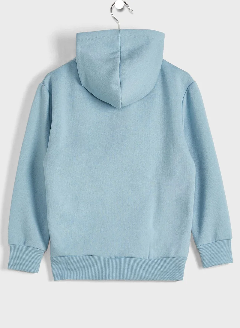 Keep them comfortable and warm in this recycled polyester hoodie, designed to take them from the classroom to the weekend. It features a front zip closure, two front pockets and a hoodie.