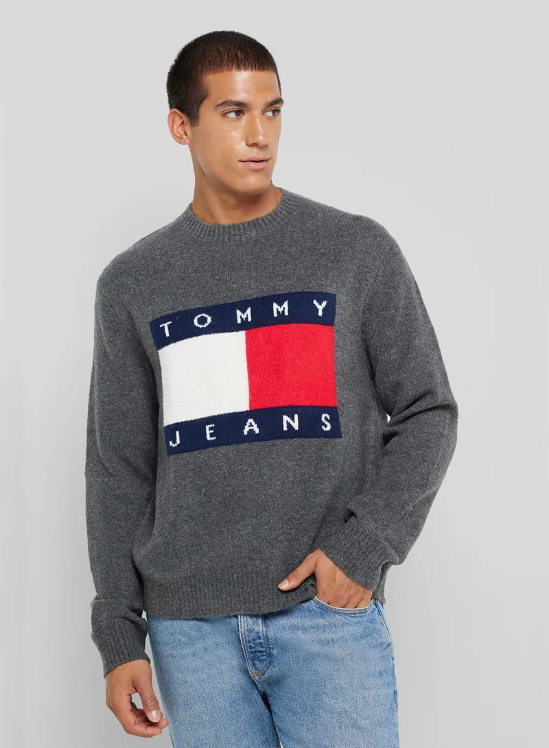 The Tommy flag badge on this mélange crew-neck jumper adds an instantly recognisable touch to everyday layering options