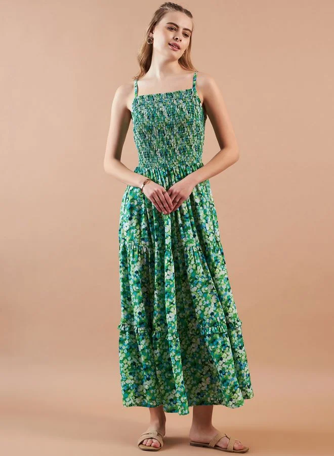 This tiered dress boasts a flattering fit-and-flare silhouette that cinches at the bodice and flows out into a relaxed, flared skirt. The style provides a flattering shape that skims the body, offering a comfortable yet chic look. The tiered design gives the dress added volume and texture, creating a fun and flowy effect. Perfect for all body types, the fit-and-flare style combines comfort with elegance. The movement of the tiers makes it an excellent choice for lively, casual events.