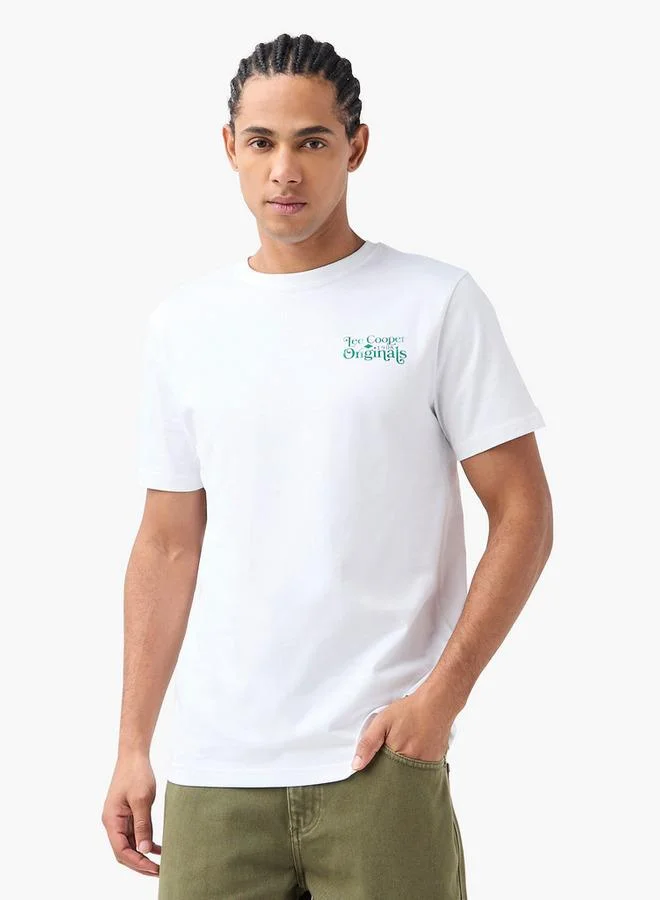 تيشيرت بياقة ضيقة وطبعات جرافيك وأكمام قصيرة من لي كوبر