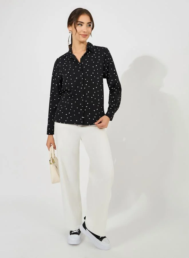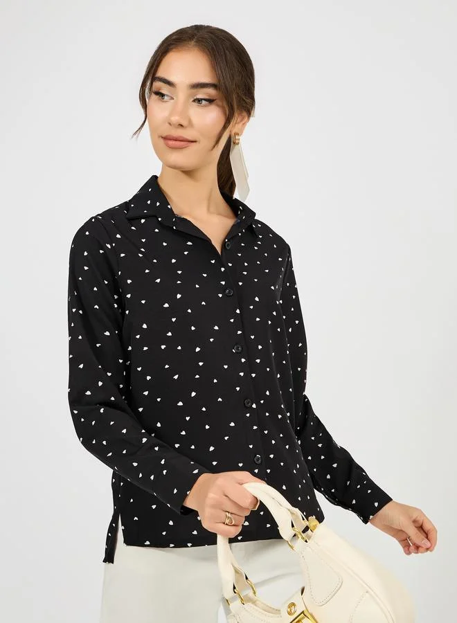 ستايلي قميص بطبعات قلب منسوجة بحافة غير متساوية