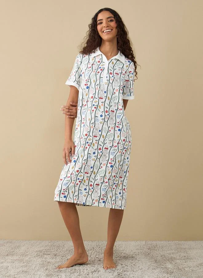 سبلاش فيڤ قميص نوم بأكمام قصيرة وطبعات