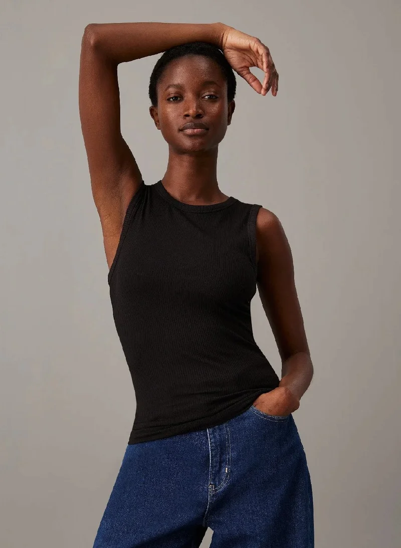 كالفن كلاين بلوزة بدون أكمام مضلعة بقصة ضيقة