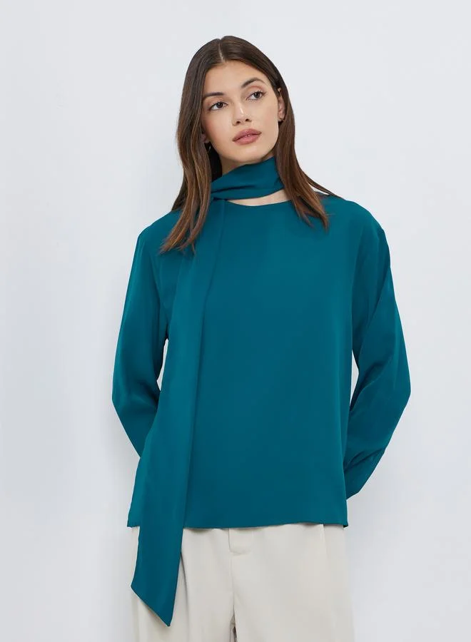 بلوزة بأكمام طويلة مع وشاح