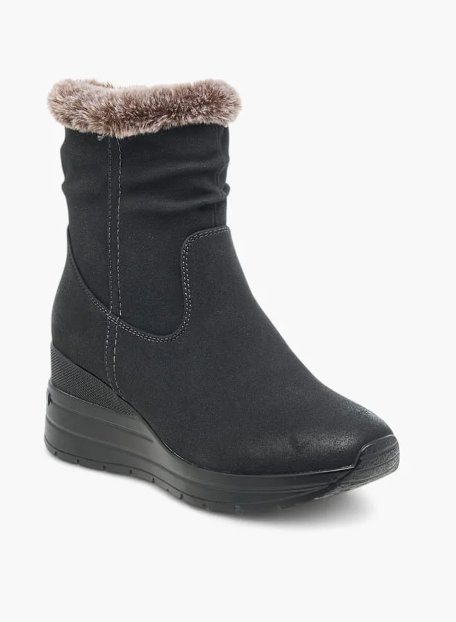 سيليست بوت نسائي بكعب إسفين وسحاب وتفاصيل قطيفة