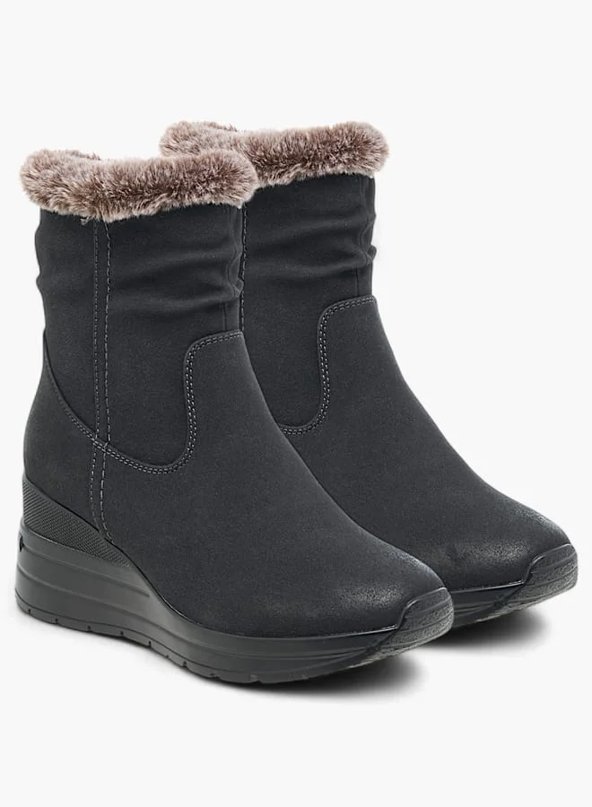 • Crafted from PU, these boots feature luxurious plush detailing that adds a touch of sophistication to any outfit