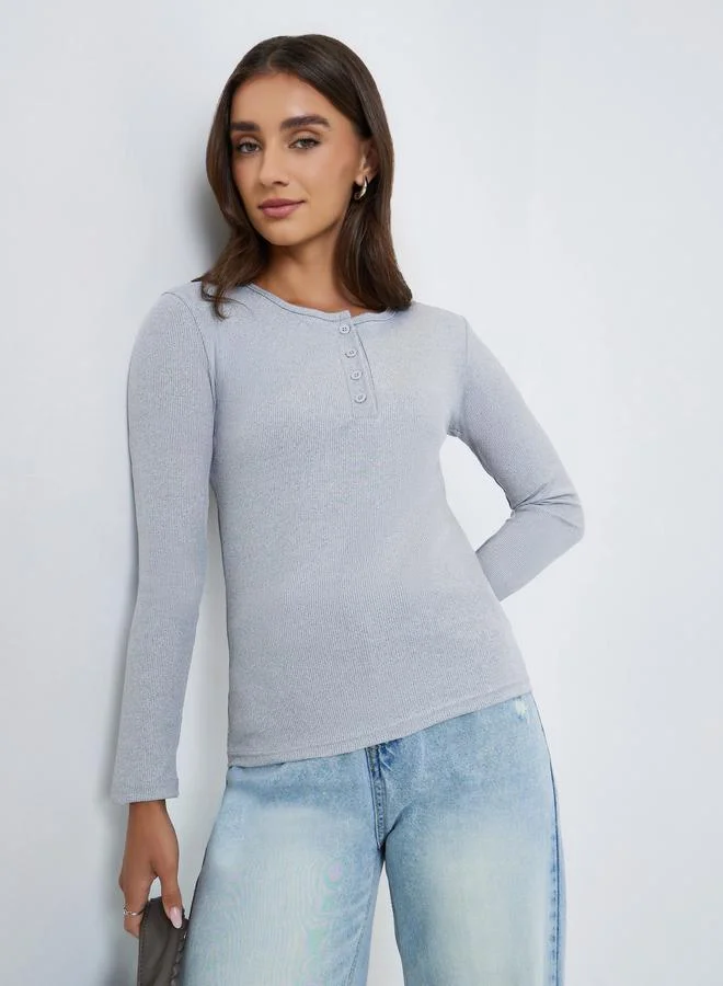 تيشيرت نسائي سادة بياقة هينلي مضلع
